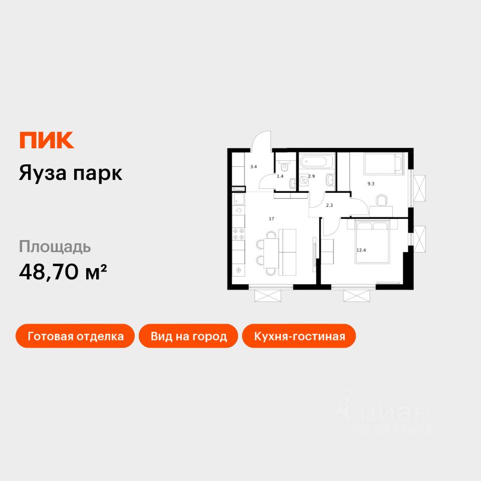 Продаётся 2-комн. квартира площадью 48,7 кв.м на 18 этаже 24 этажного дома (Корпус 5, Секция 1) проекта ПИК Яуза парк. Светлый просторный подъезд на уровне земли, функциональная планировка, большие окна, c отделкой.