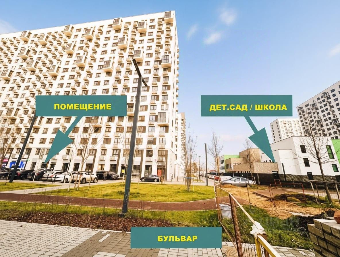 О РАСПОЛОЖЕНИИ Высокая плотность населения — в пешей доступности более 11 000 квартир, что гарантирует стабильный поток потенциальных клиентов. Численность населения в данном ЖК — около 20 000 человек, собственная школа, детский сад и развитая инфраструктура (150 объектов). В данном корпусе квартиры продавались с отделкой. С противоположной стороны здания большая авто парковка. Фасад помещения выходит на центральный пешеходный Бульвар, что даёт возможность привлечения основной клиентской аудитории. С торца дома находится детский сад, что даёт дополнительный трафик.