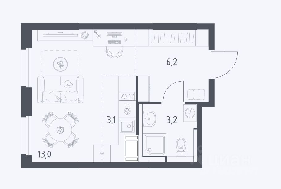 продам 1-к, Стрелковый 1-й переулок, 58 501 223 ₽