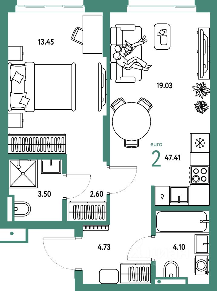 Продаётся 2-комнатная квартира в строящемся доме (Дом Перов), срок сдачи: III-кв. 2026, общей площадью 47.41 кв.м., на 4 этаже. Многоэтажные жилые дома с объектами инфраструктуры, расположенные по адресу: Московская область, г.о. Мытищи, г.Мытищи, мкр. 18Б, ул. Комарова.