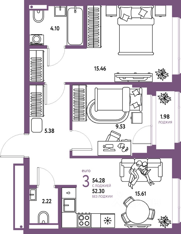 Продаётся 3-комнатная квартира в строящемся доме (Дом Перов), срок сдачи: III-кв. 2026, общей площадью 54.28 кв.м., на 10 этаже. Многоэтажные жилые дома с объектами инфраструктуры, расположенные по адресу: Московская область, г.о. Мытищи, г.Мытищи, мкр. 18Б, ул. Комарова.