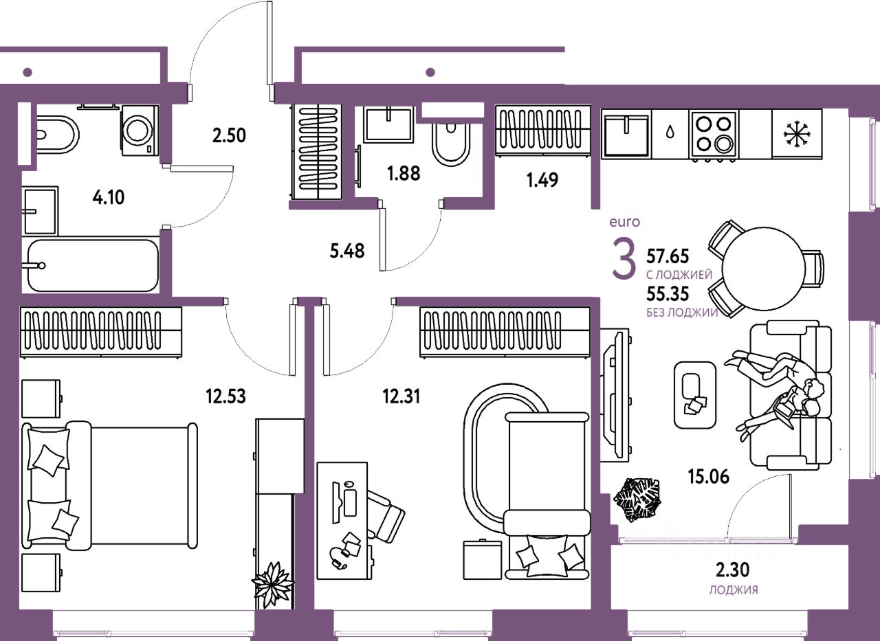 Продаётся 3-комнатная квартира в строящемся доме (Дом Перов), срок сдачи: III-кв. 2026, общей площадью 57.65 кв.м., на 15 этаже. Многоэтажные жилые дома с объектами инфраструктуры, расположенные по адресу: Московская область, г.о. Мытищи, г.Мытищи, мкр. 18Б, ул. Комарова.