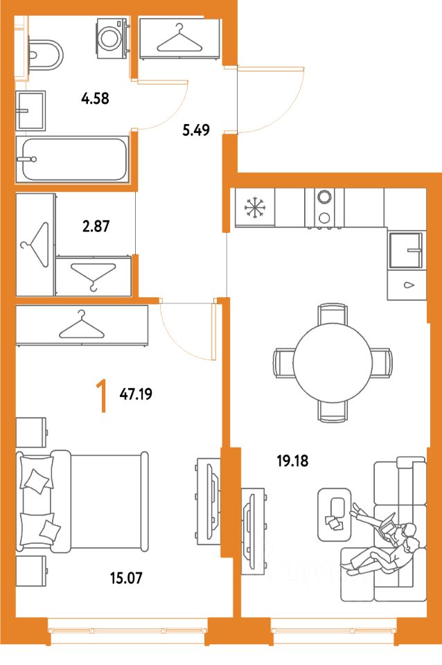 Продаётся 1-комнатная квартира в строящемся доме (Дом Васнецов), срок сдачи: IV-кв. 2027, общей площадью 47.19 кв.м., на 4 этаже. Многоэтажные жилые дома с объектами инфраструктуры, расположенные по адресу: Московская область, г.о. Мытищи, г.Мытищи, мкр. 18Б, ул. Комарова.