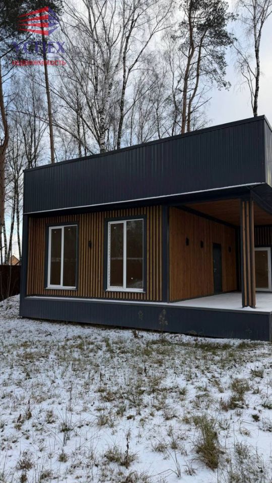 Современный, одноэтажный, деревянный дом, общей площадью 106.2 кв. м., на земельном участке правильной формы, площадью 6 соток.