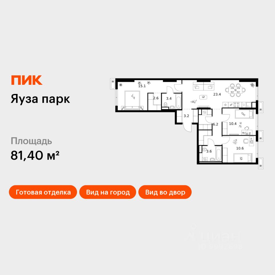 Продаётся 3-комн. квартира площадью 81,4 кв.м на 15 этаже 15 этажного дома (Корпус 13, Секция 3) проекта ПИК Яуза парк. Светлый просторный подъезд на уровне земли, функциональная планировка, большие окна, c отделкой.