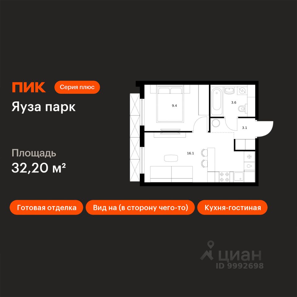 Продаётся 1-комн. квартира площадью 32,2 кв.м на 13 этаже 24 этажного дома (Корпус 5, Секция 1) проекта ПИК Яуза парк. Светлый просторный подъезд на уровне земли, функциональная планировка, большие окна, c отделкой.