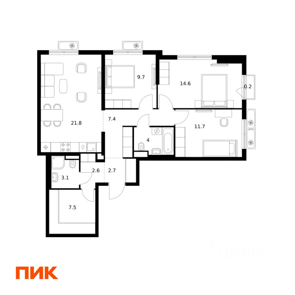 Продаётся 3-комн. квартира площадью 85,3 кв.м на 4 этаже 24 этажного дома (Корпус 12, Секция 1) проекта ПИК Яуза парк. Светлый просторный подъезд на уровне земли, функциональная планировка, большие окна, предчистовая отделка.