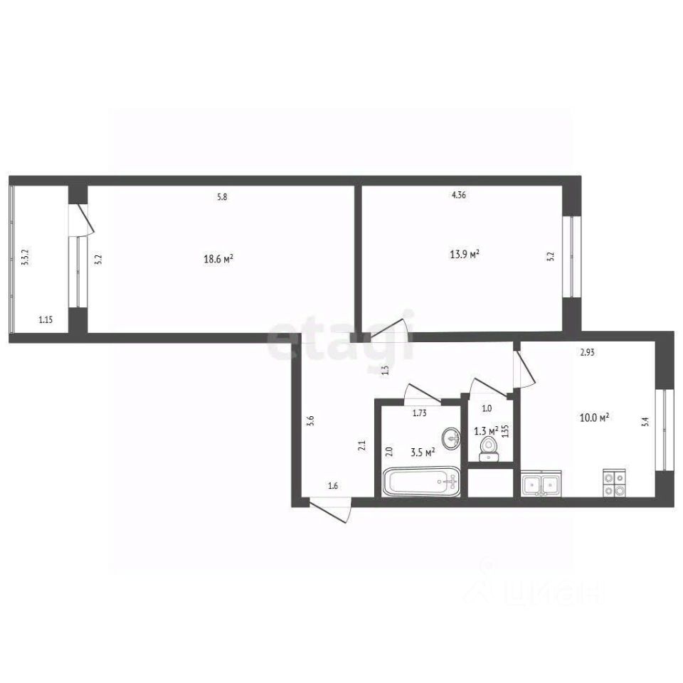 КВАРТИРА: Просторная 2-х комнатная квартира общей площадью 59 кв.м. Квартира распашонка (на обе стороны). В квартире сан.узел раздельный.