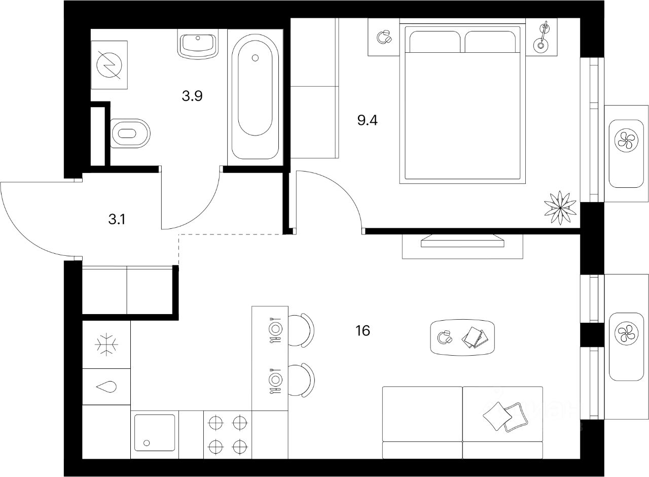 За 7 минут можно дойти пешком до ближайшей автобусной остановки. Столько же займёт дорога до ''Лосиного острова'' - облагороженного парка с разными активностями для всей семьи, благоустроенными зонами для отдыха, местами для прогулок и пробежек на свежем воздухе.