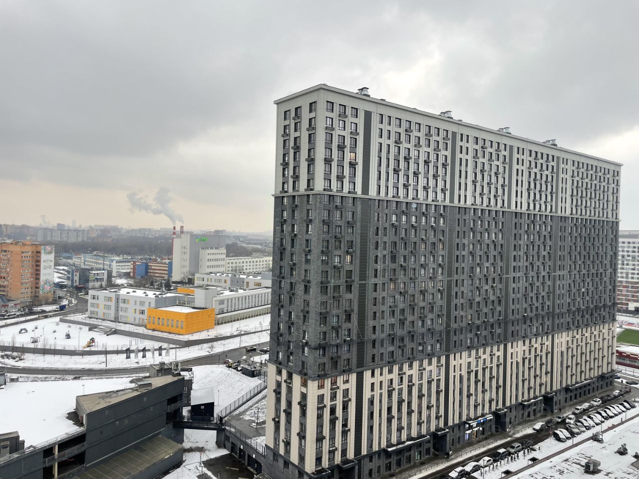 Продается отличная видовая однокомнатная квартира с панорамными окнами в Мытищах в ЖК Ньютон бизнес класса, Общая площадь квартиры с лоджией — 44 кв. м, комната — 20 кв. м, кухня — 14 кв. м. Квартира расположена на 16 этаже 25-этажного монолитного дома, построенного в 2014 году.