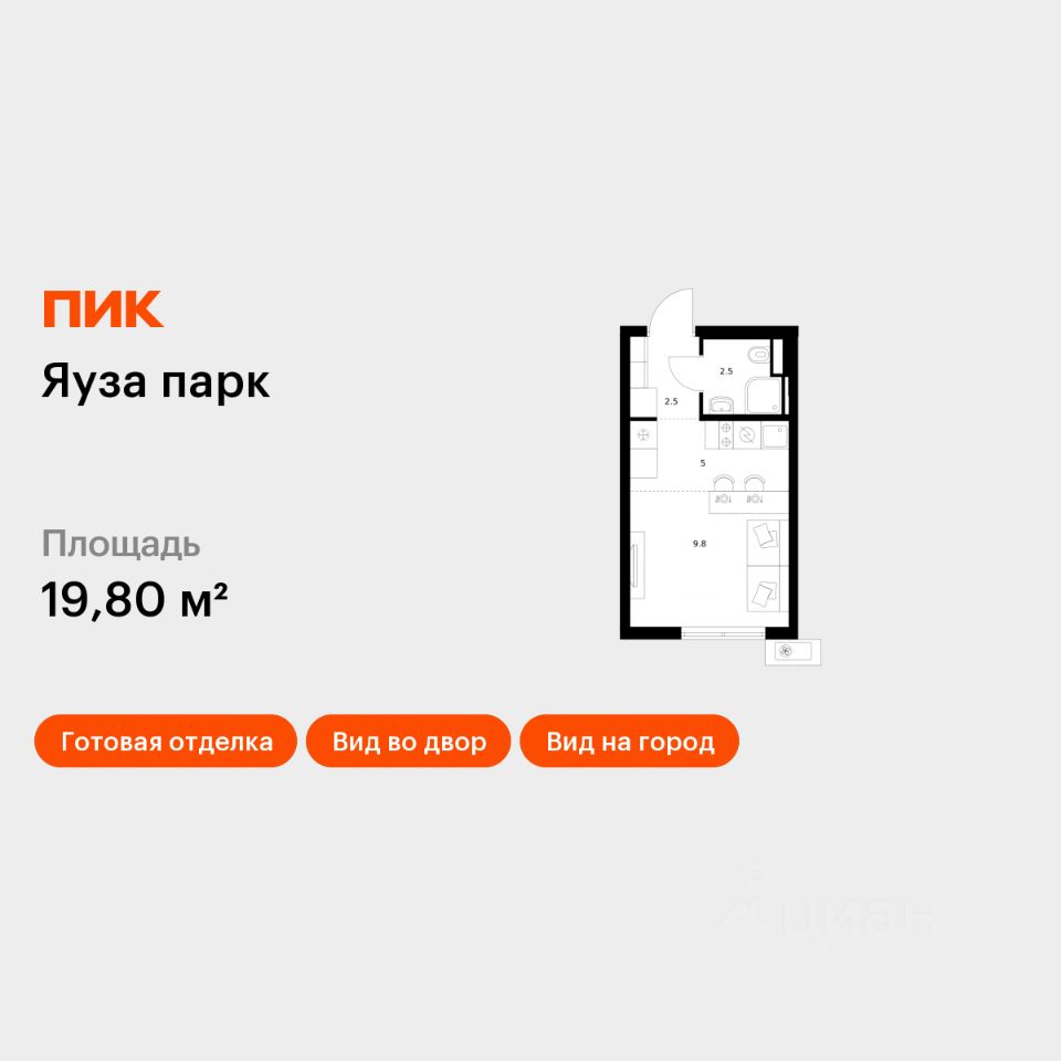 Продаётся квартира-студия площадью 19,8 кв.м на 20 этаже 24 этажного дома (Корпус 14, Секция 1) проекта ПИК Яуза парк. Светлый просторный подъезд на уровне земли, функциональная планировка, большие окна, c отделкой.