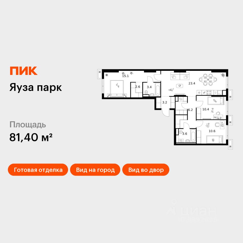 Продаётся 3-комн. квартира площадью 81,4 кв.м на 13 этаже 15 этажного дома (Корпус 13, Секция 2) проекта ПИК Яуза парк. Светлый просторный подъезд на уровне земли, функциональная планировка, большие окна, c отделкой.