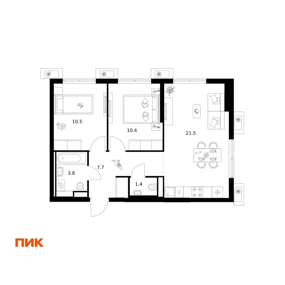 Продаётся 2-комн. квартира площадью 55,3 кв.м на 24 этаже 24 этажного дома (Корпус 14, Секция 1) проекта ПИК Яуза парк. Светлый просторный подъезд на уровне земли, функциональная планировка, большие окна, c отделкой.