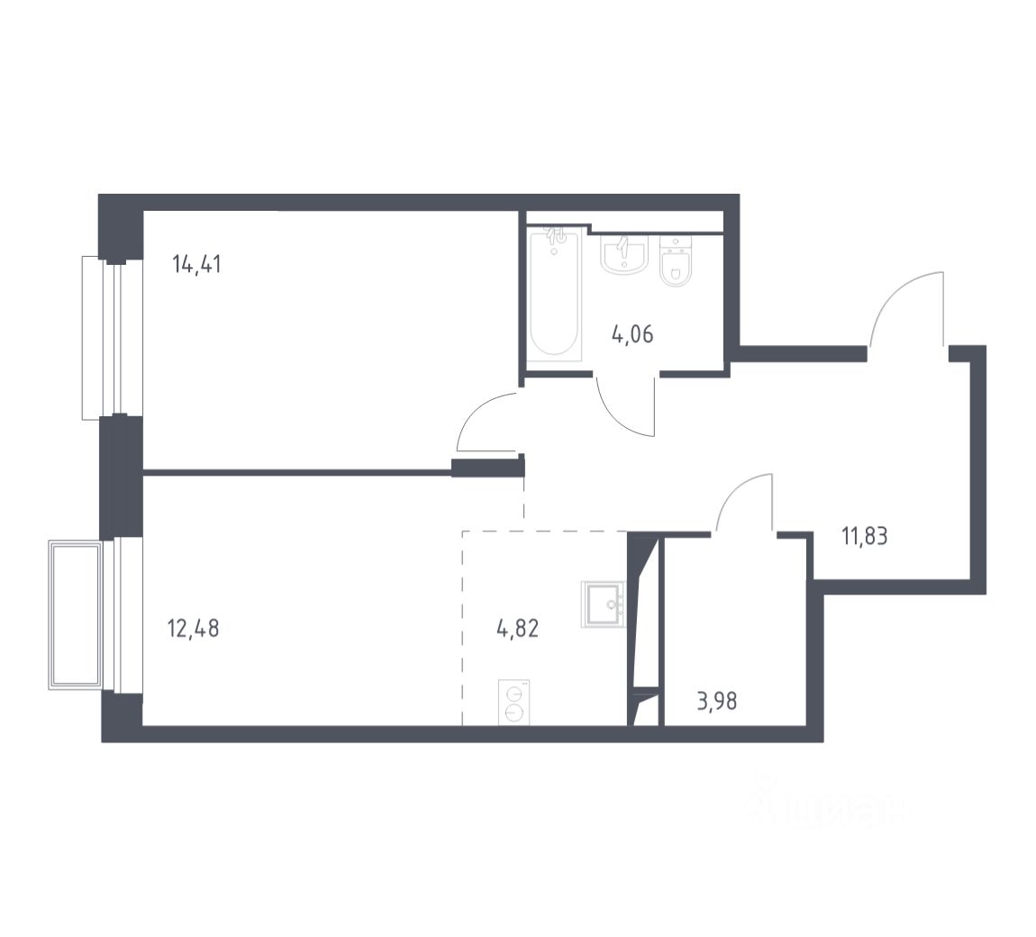 Общая площадь51,1 м2