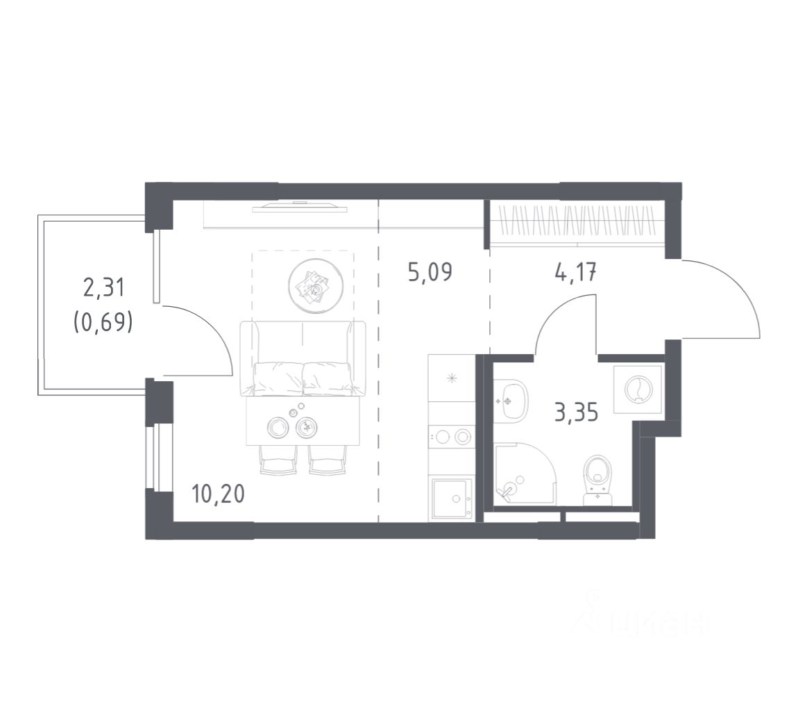 Общая площадь23,5 м2