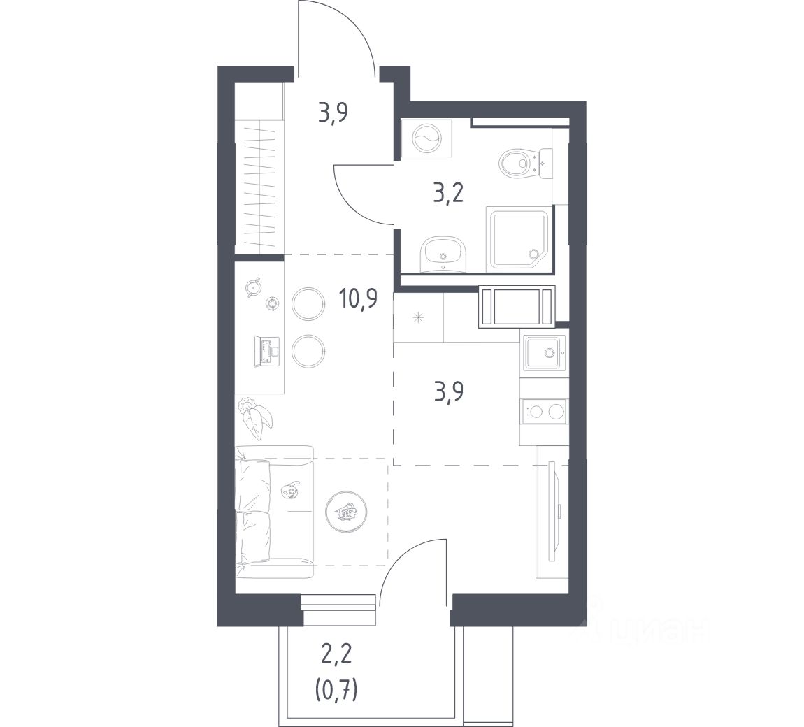Строим кварталы для жизни с заботой о будущем. Предлагается студия комфорт-класса площадью 22,1 кв.м в корпусе 4.1 на 7-м этаже, в жилом комплексе ''Мытищи Парк''.