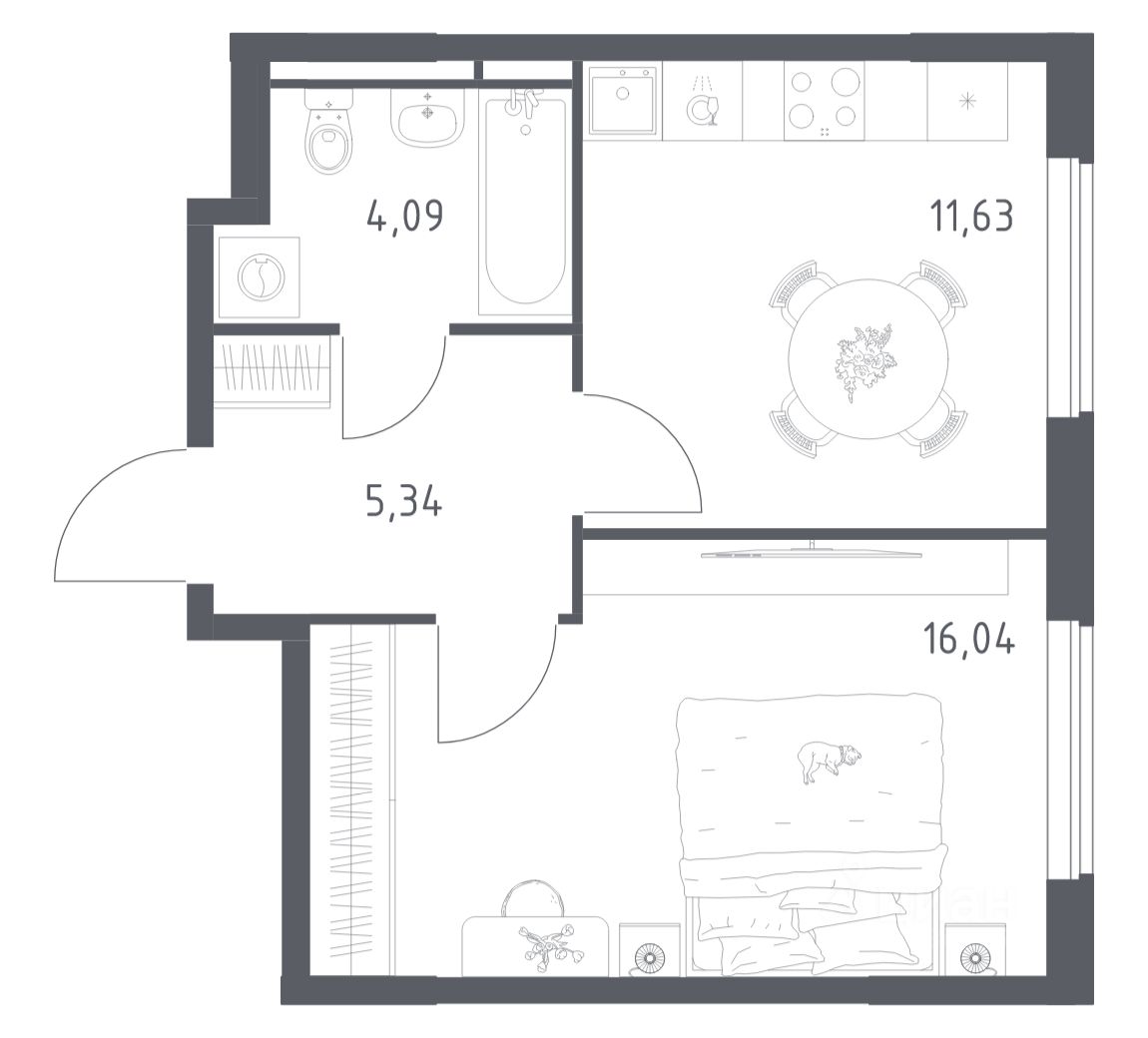 В продаже 1-комнатная квартира в корпусе 6 ЖК 'Мытищи Парк'. Квартира располагается на 16 этаже, общая площадь 37.1 м2.