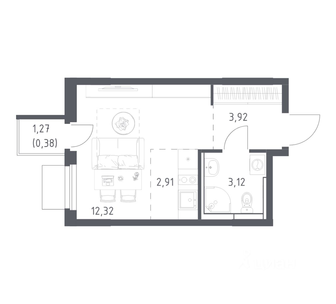 Жилая площадь12,3 м2