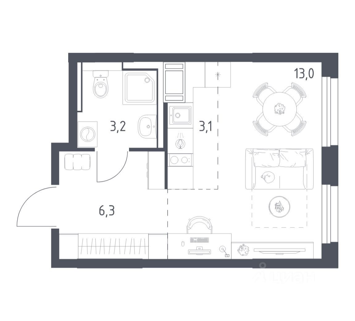 Строим кварталы для жизни с заботой о будущем. Предлагается студия комфорт-класса площадью 25,2 кв.м в корпусе 4.1 на 7-м этаже, в жилом комплексе ''Мытищи Парк''.
