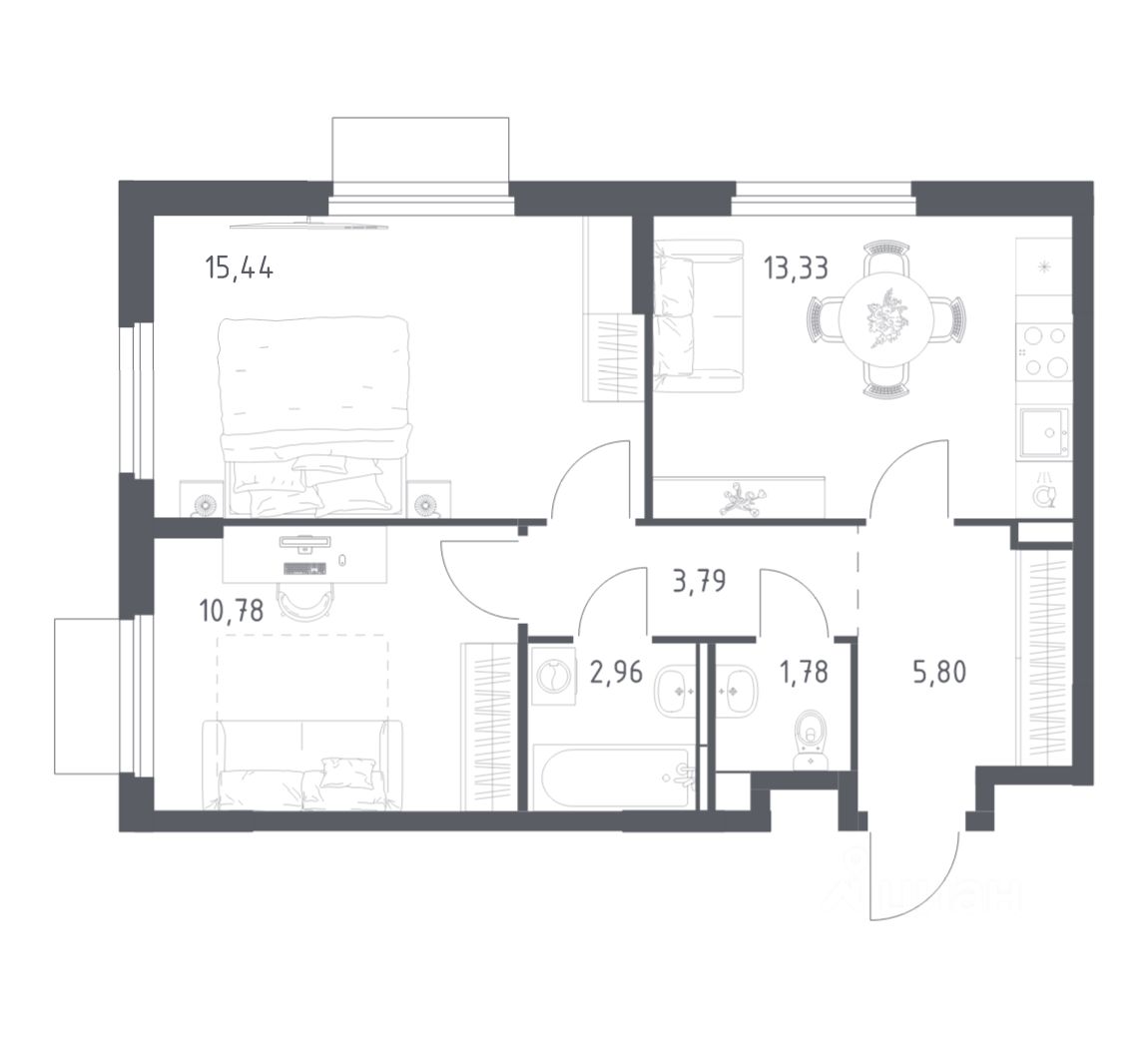 Общая площадь53,88 м2