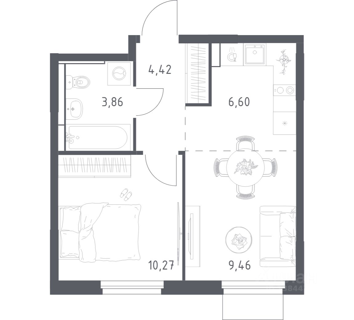 Общая площадь34,61 м2