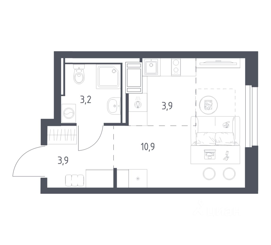 Жилая площадь10,9 м2
