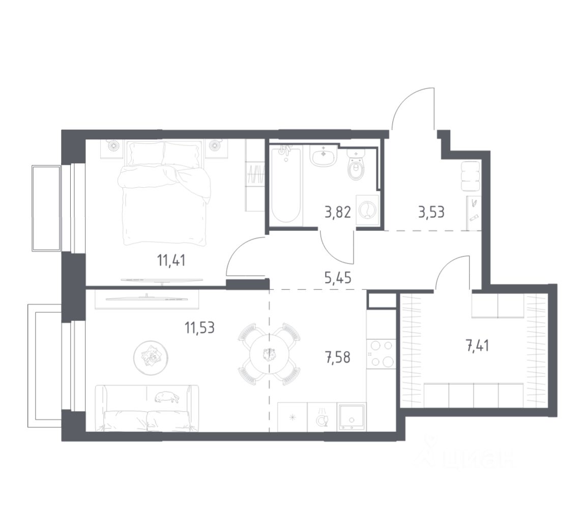 Жилая площадь22,9 м2