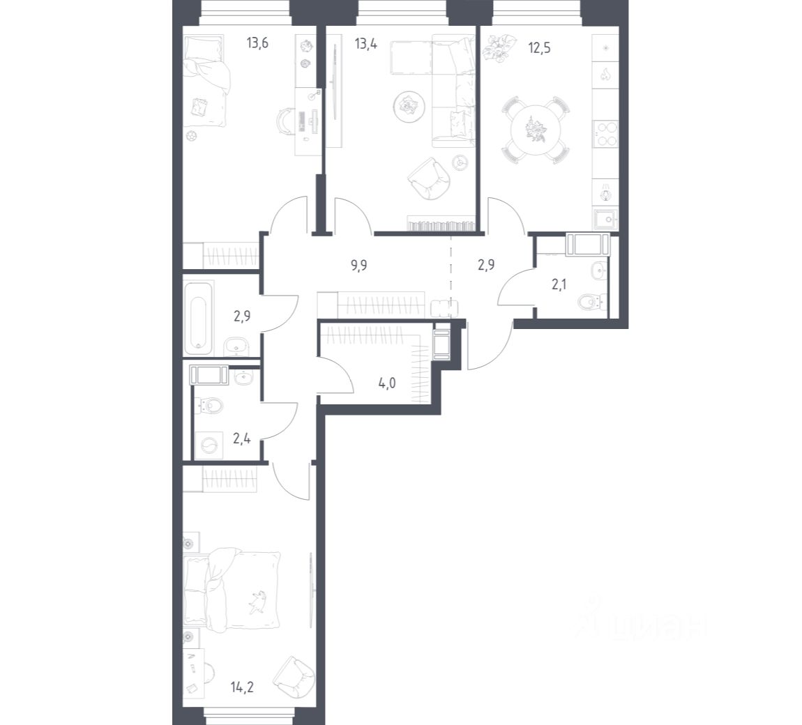Строим кварталы для жизни с заботой о будущем. Предлагается 3-комнатная квартира комфорт-класса площадью 76,7 кв.м в корпусе 4.2 на 7-м этаже, в жилом комплексе ''Мытищи Парк''.