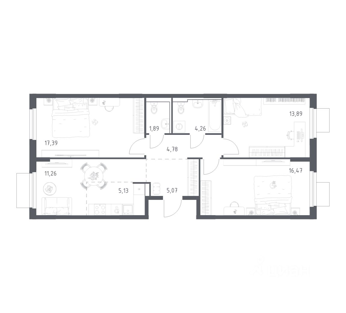 Строим кварталы для жизни с заботой о будущем. Предлагается 3-комнатная квартира комфорт-класса площадью 80,14 кв.м в корпусе 5 на 3-м этаже, в жилом комплексе ''Мытищи Парк''.