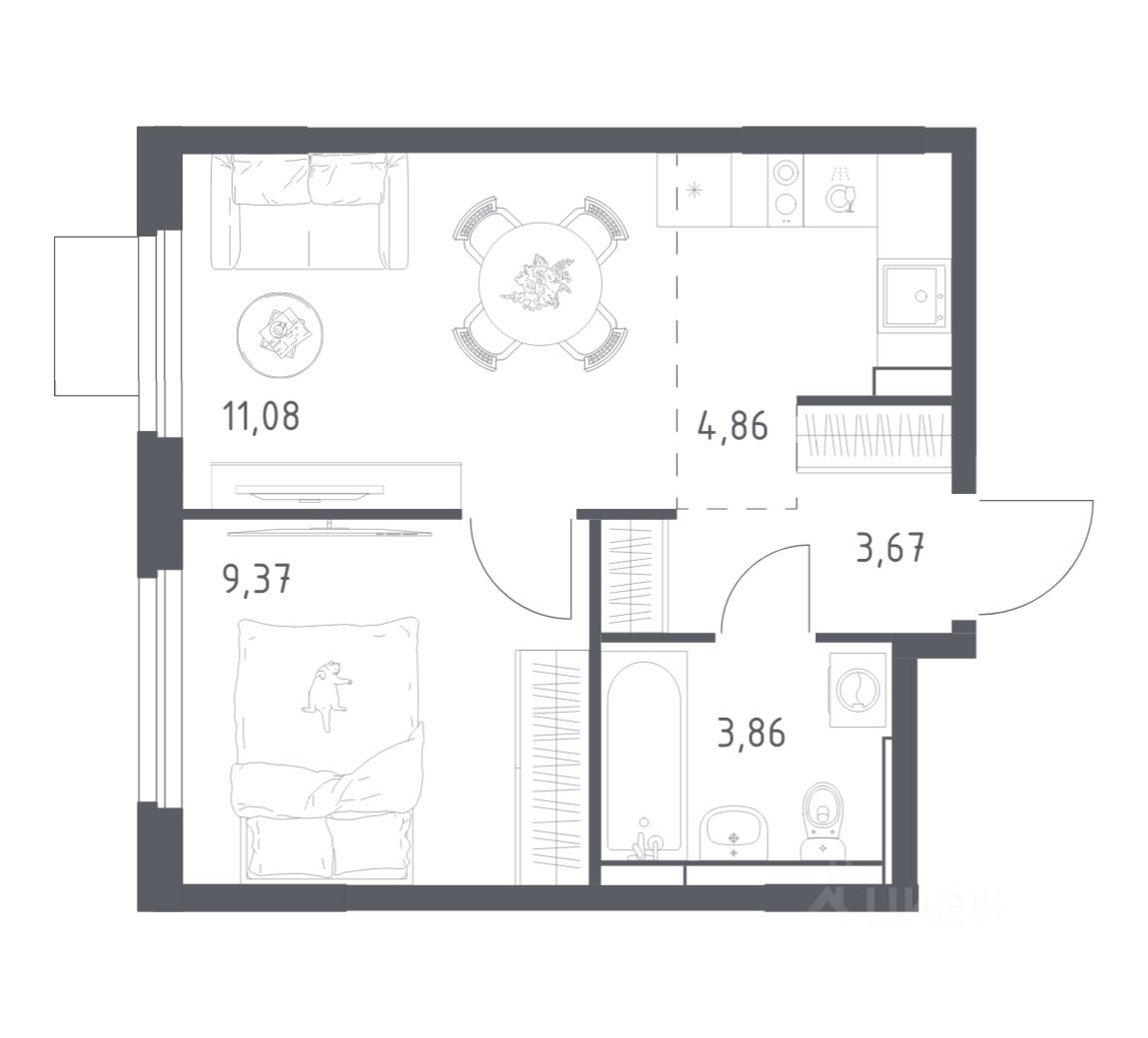 Общая площадь32,84 м2