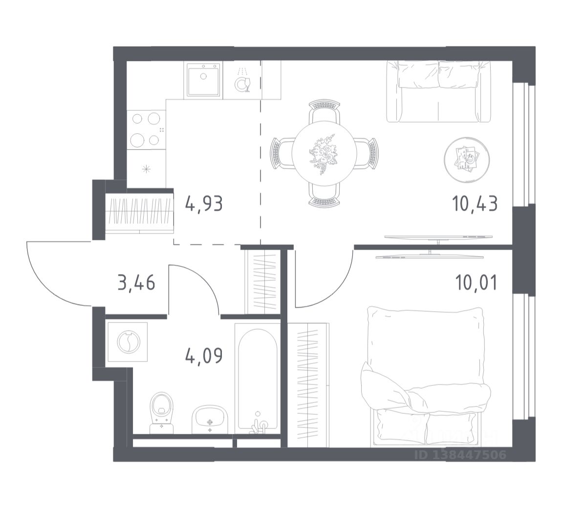 В продаже 1-комнатная квартира в корпусе 6 ЖК 'Мытищи Парк'. Квартира располагается на 15 этаже, общая площадь 32.92 м2.