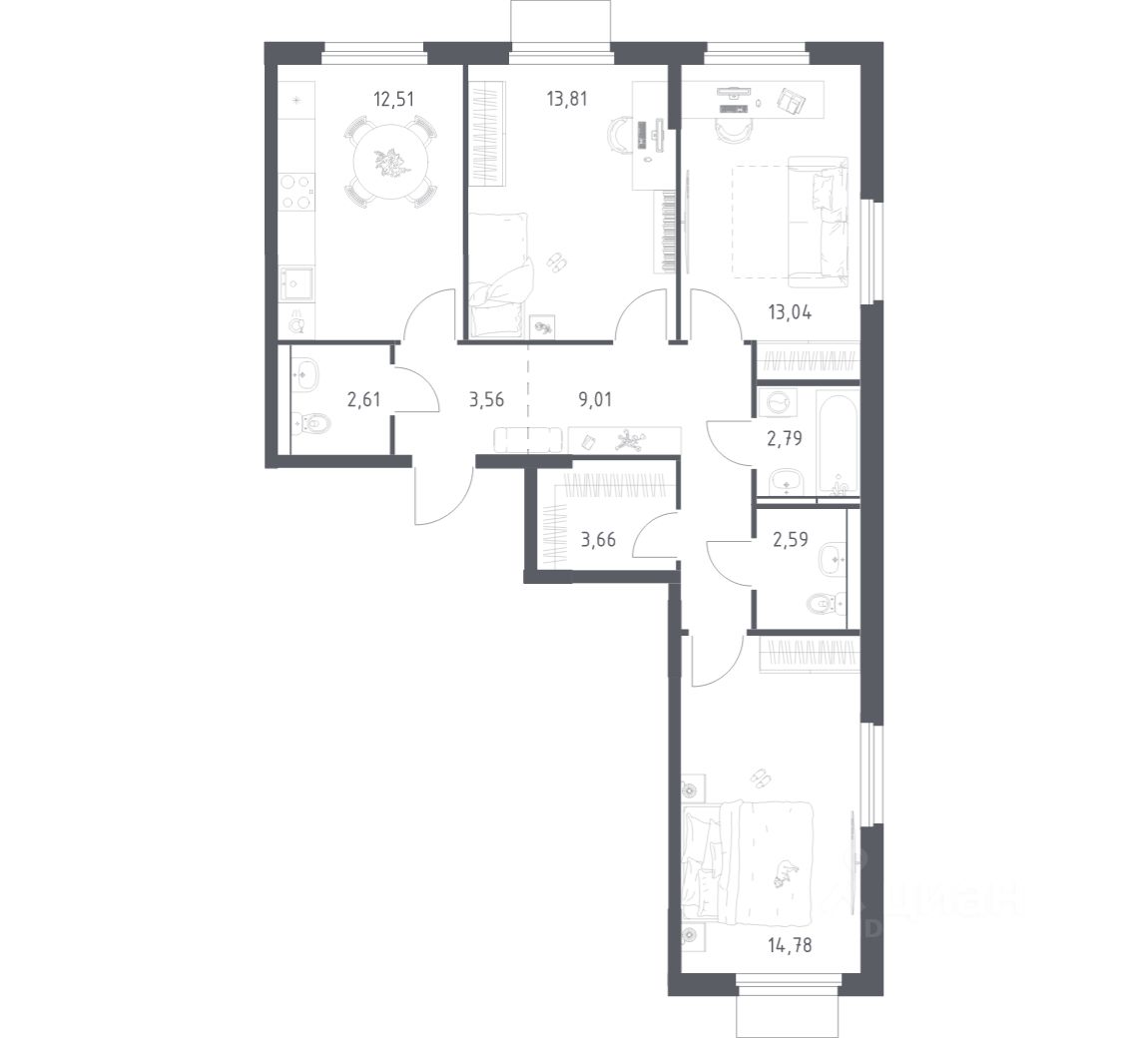 Строим кварталы для жизни с заботой о будущем. Предлагается 3-комнатная квартира комфорт-класса площадью 78,36 кв.м в корпусе 5 на 5-м этаже, в жилом комплексе ''Мытищи Парк''.