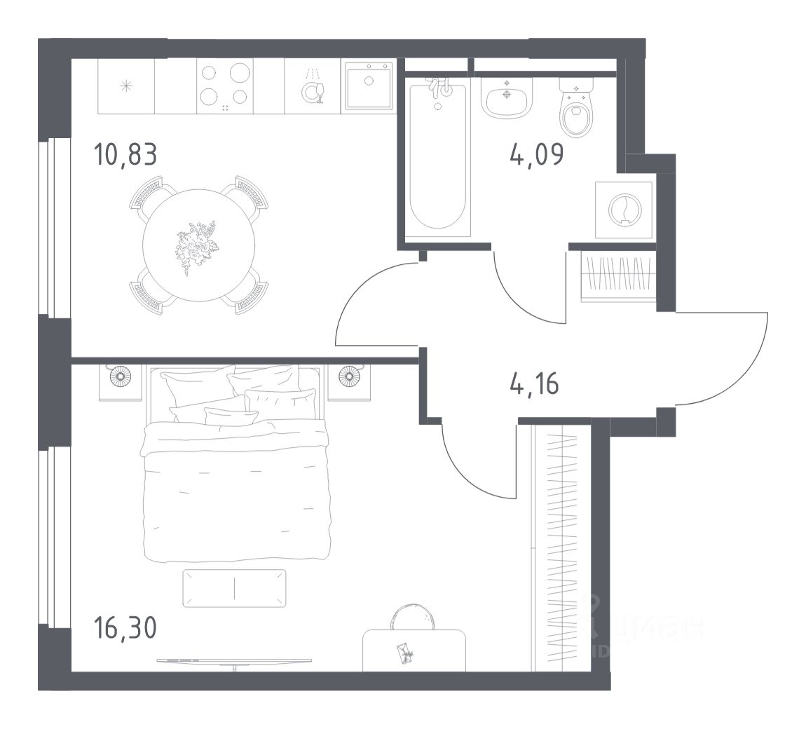 Жилая площадь16,3 м2