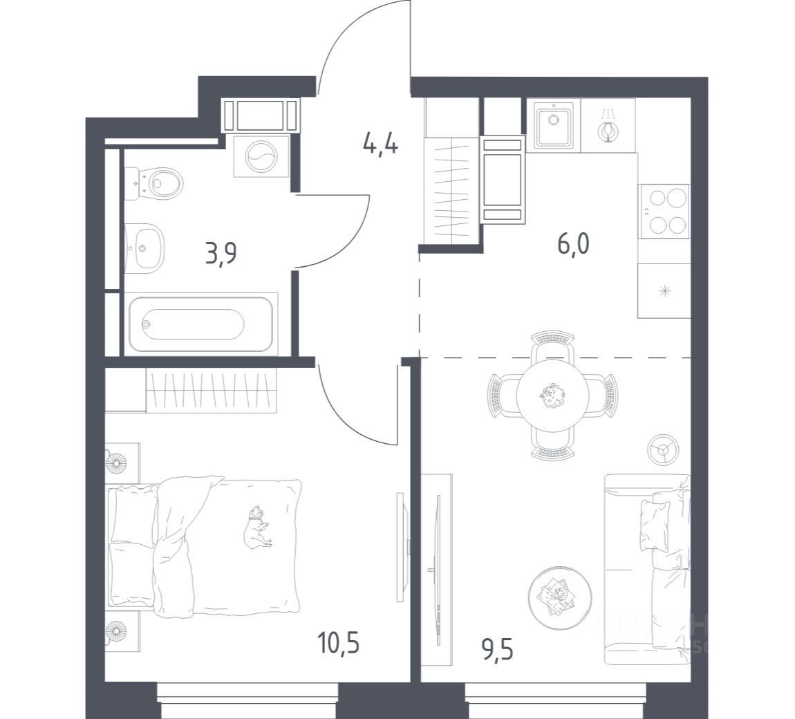 Общая площадь33,9 м2