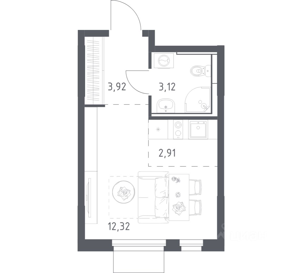 Жилая площадь12,3 м2