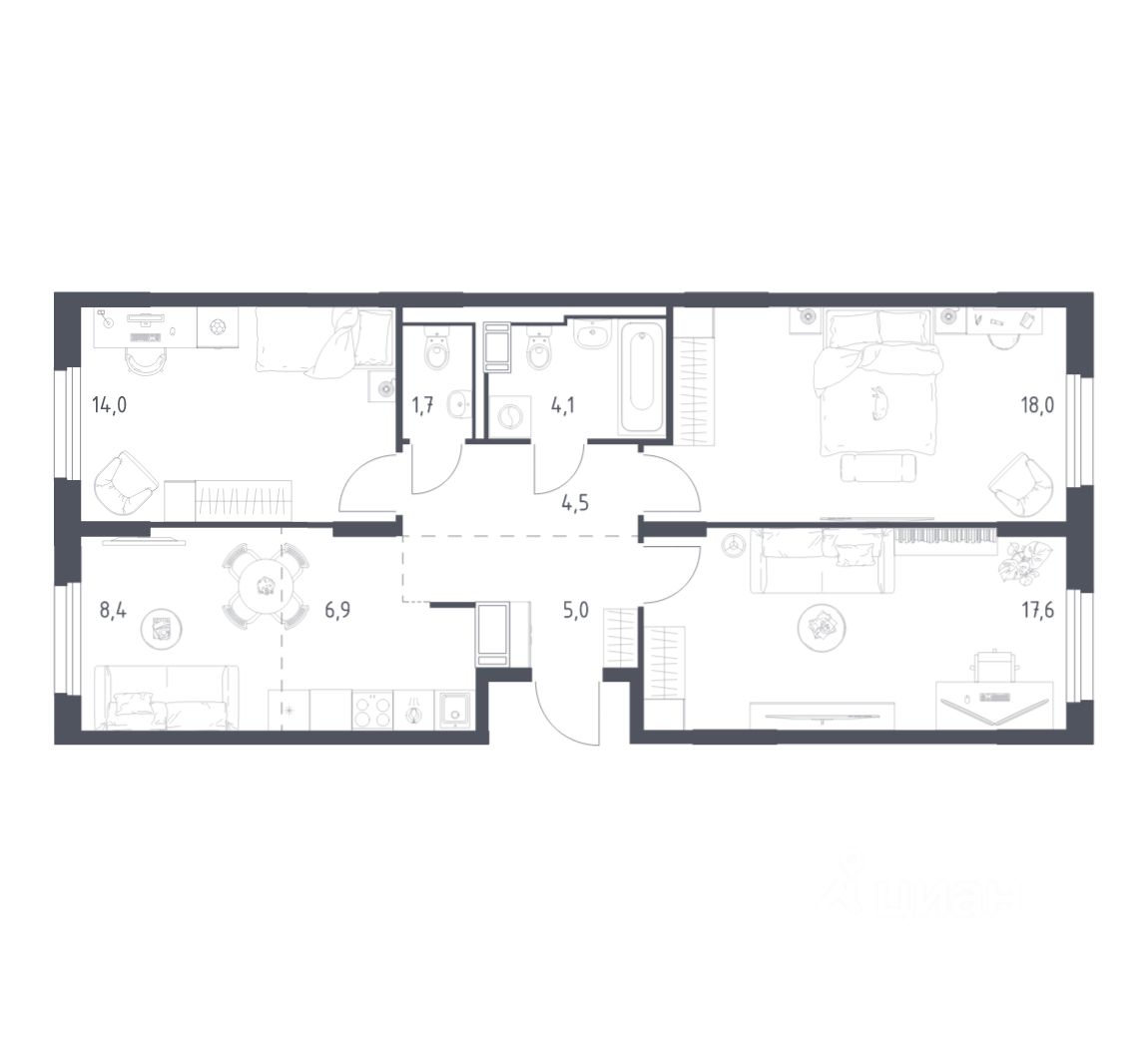 Строим кварталы для жизни с заботой о будущем. Предлагается 3-комнатная квартира комфорт-класса площадью 78,7 кв.м в корпусе 4.1 на 3-м этаже, в жилом комплексе ''Мытищи Парк''.