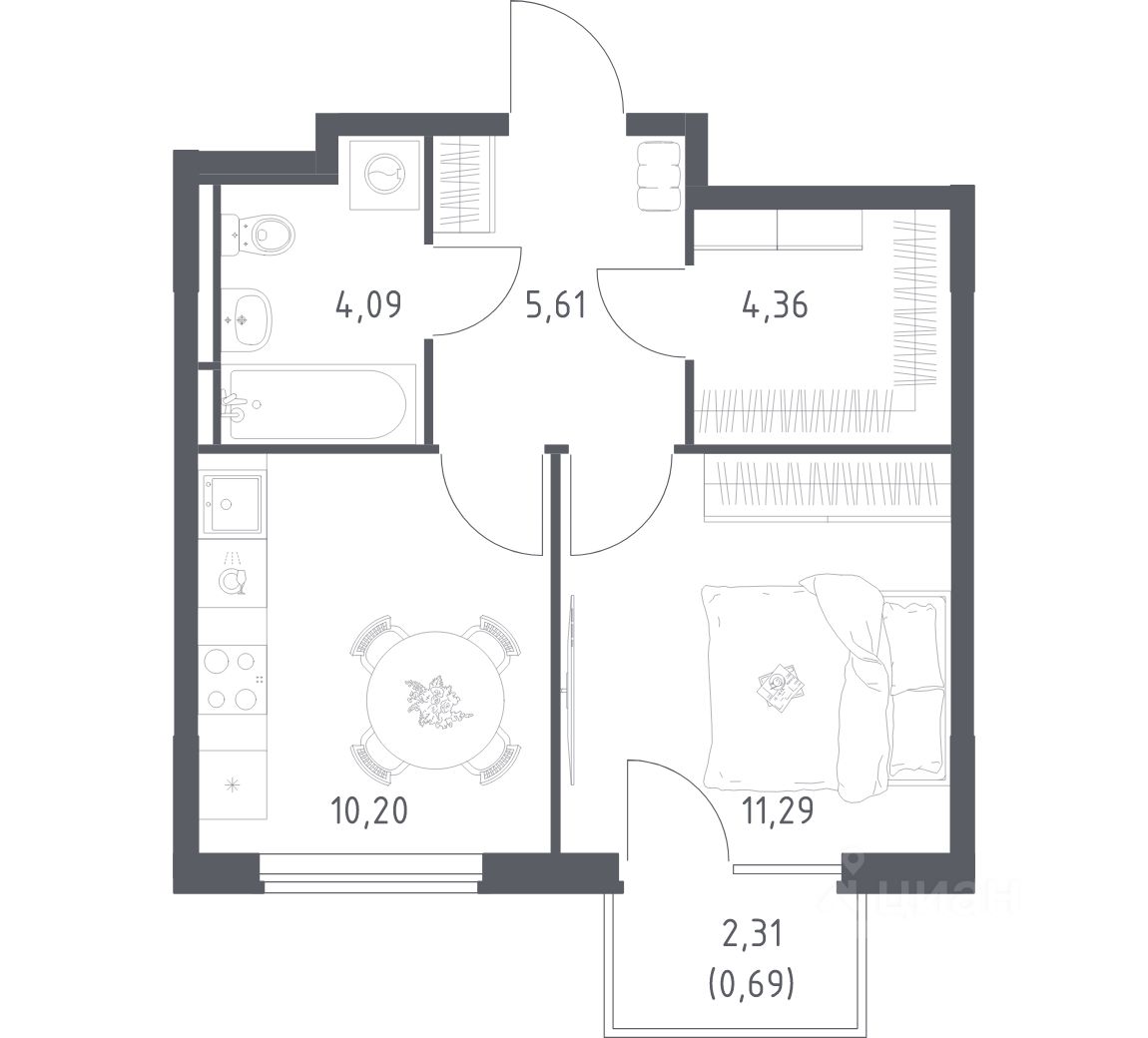 Строим кварталы для жизни с заботой о будущем. Предлагается 1-комнатная квартира комфорт-класса площадью 36,24 кв.м в корпусе 6 на 9-м этаже, в жилом комплексе ''Мытищи Парк''.