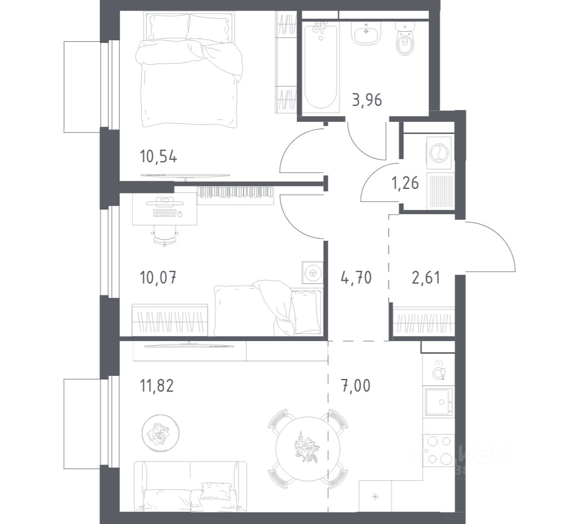 Общая площадь51,96 м2