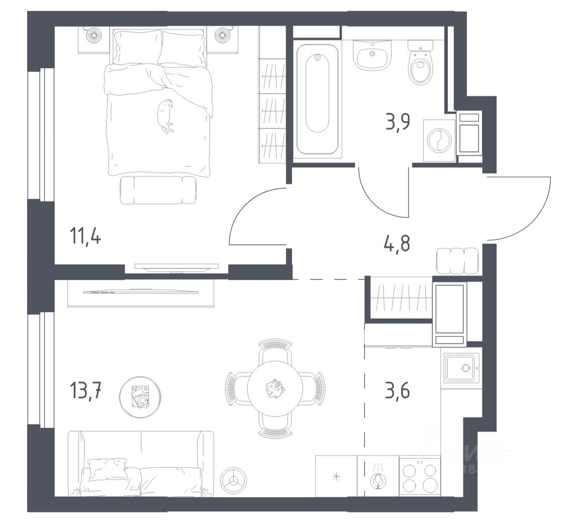 Строим кварталы для жизни с заботой о будущем. Предлагается 1-комнатная квартира комфорт-класса площадью 36,9 кв.м в корпусе 4.1 на 3-м этаже, в жилом комплексе ''Мытищи Парк''.