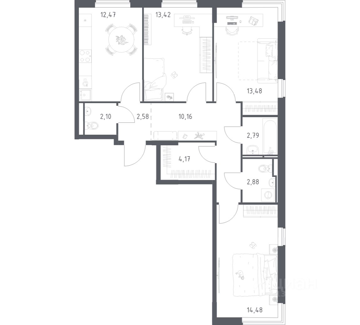 Строим кварталы для жизни с заботой о будущем. Предлагается 3-комнатная квартира комфорт-класса площадью 78,53 кв.м в корпусе 6 на 2-м этаже, в жилом комплексе ''Мытищи Парк''.