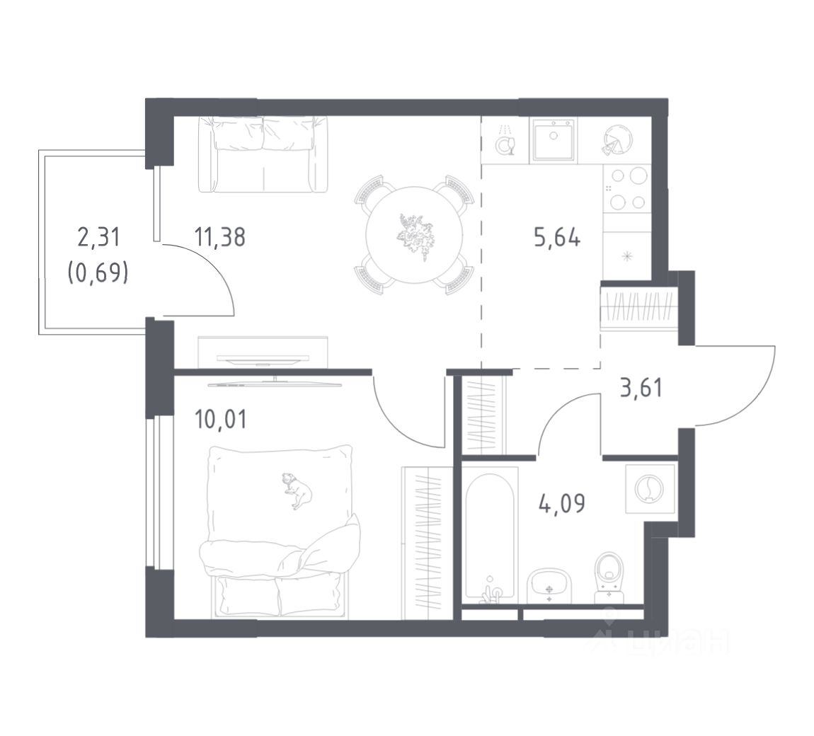 Общая площадь35,42 м2