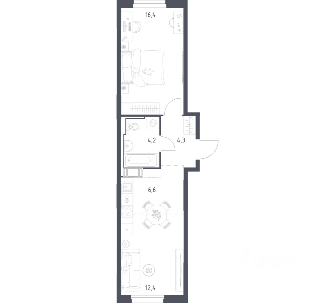 Строим кварталы для жизни с заботой о будущем. Предлагается 1-комнатная квартира комфорт-класса площадью 43,6 кв.м в корпусе 4.1 на 12-м этаже, в жилом комплексе ''Мытищи Парк''.