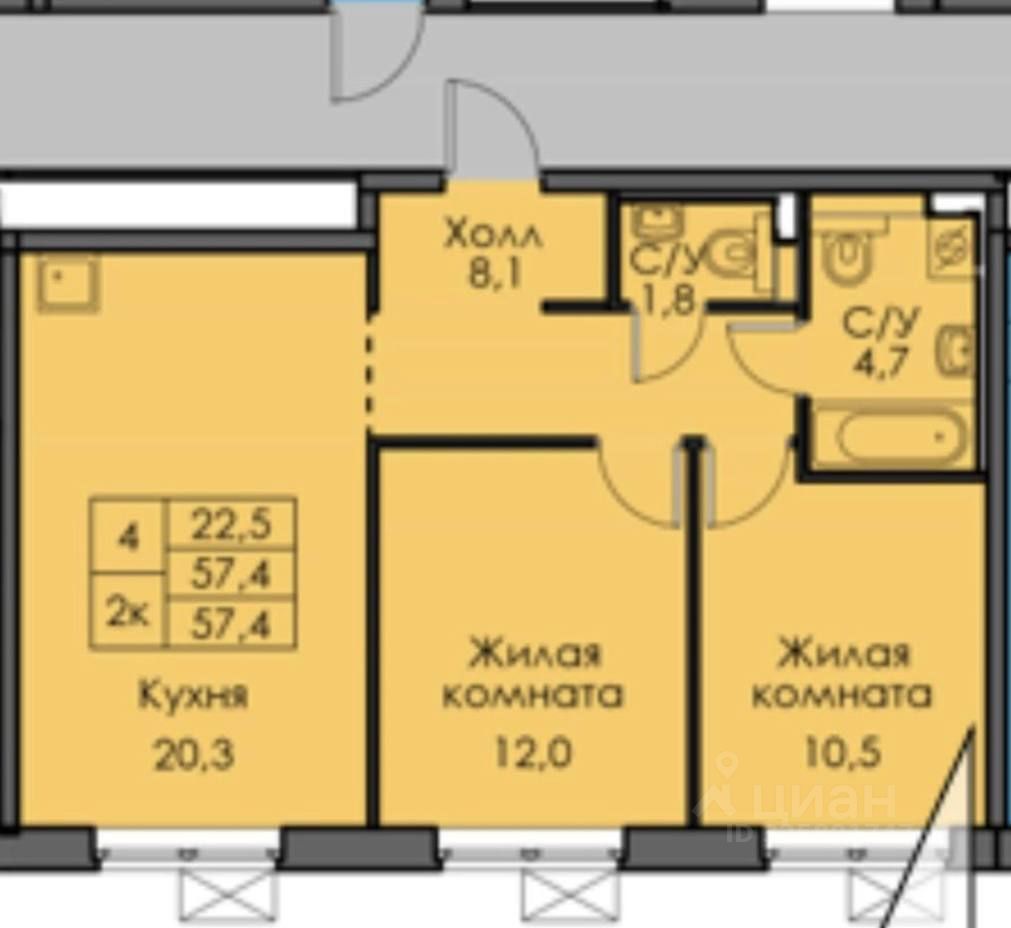 Планировка : Просторная кухня-гостиная более 20 кв.м. Две изолированные комнаты. Два раздельных санузла.