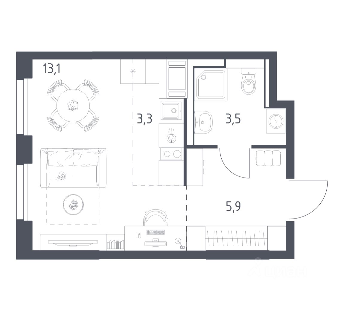 Строим кварталы для жизни с заботой о будущем. Предлагается студия комфорт-класса площадью 25,9 кв.м в корпусе 4.1 на 6-м этаже, в жилом комплексе ''Мытищи Парк''.