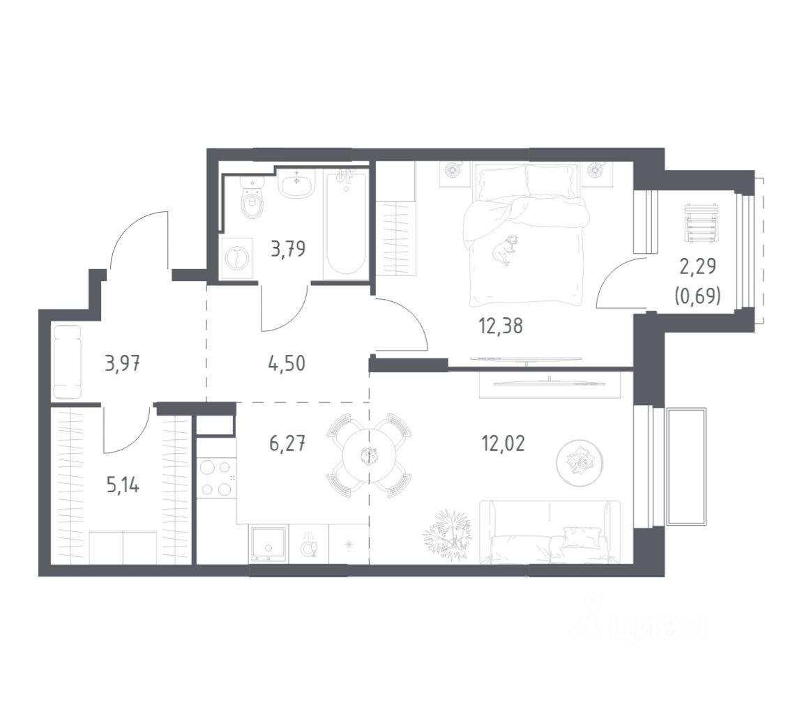 Общая площадь48,76 м2