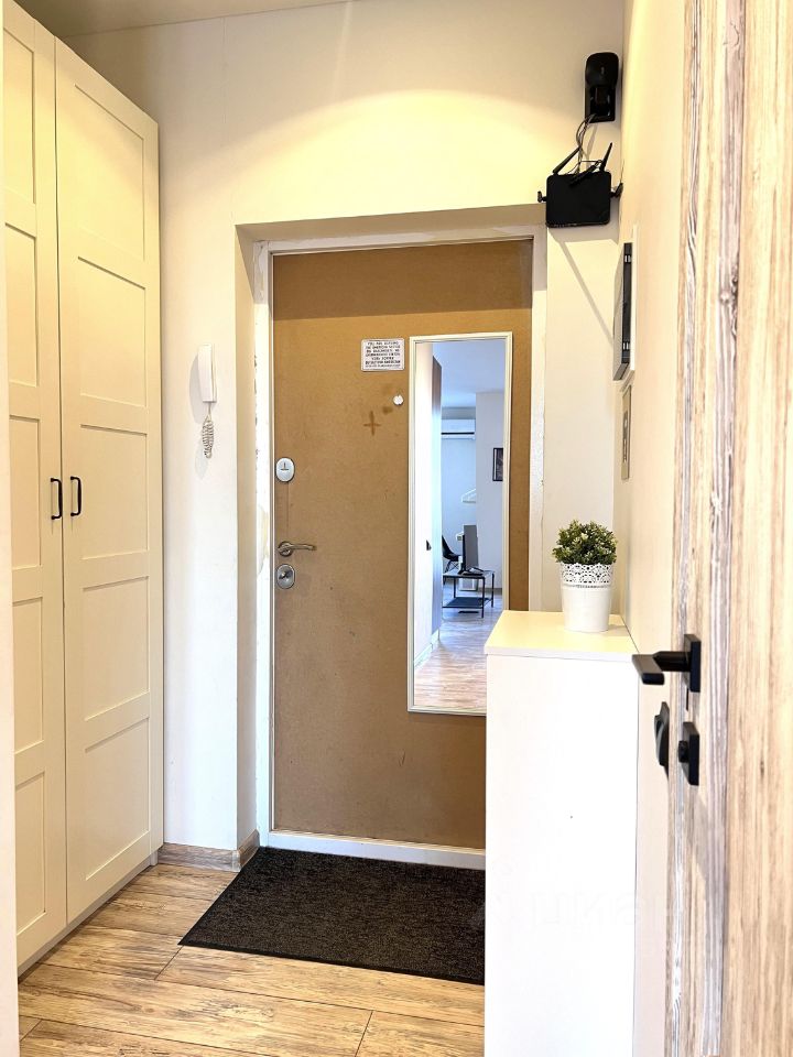 Совмещенный санузел с душевой кабиной, стиральная машина. В коридоре вместительный шкаф и обувница. Гардероб со встроенной системой хранения. Застекленная лоджия.