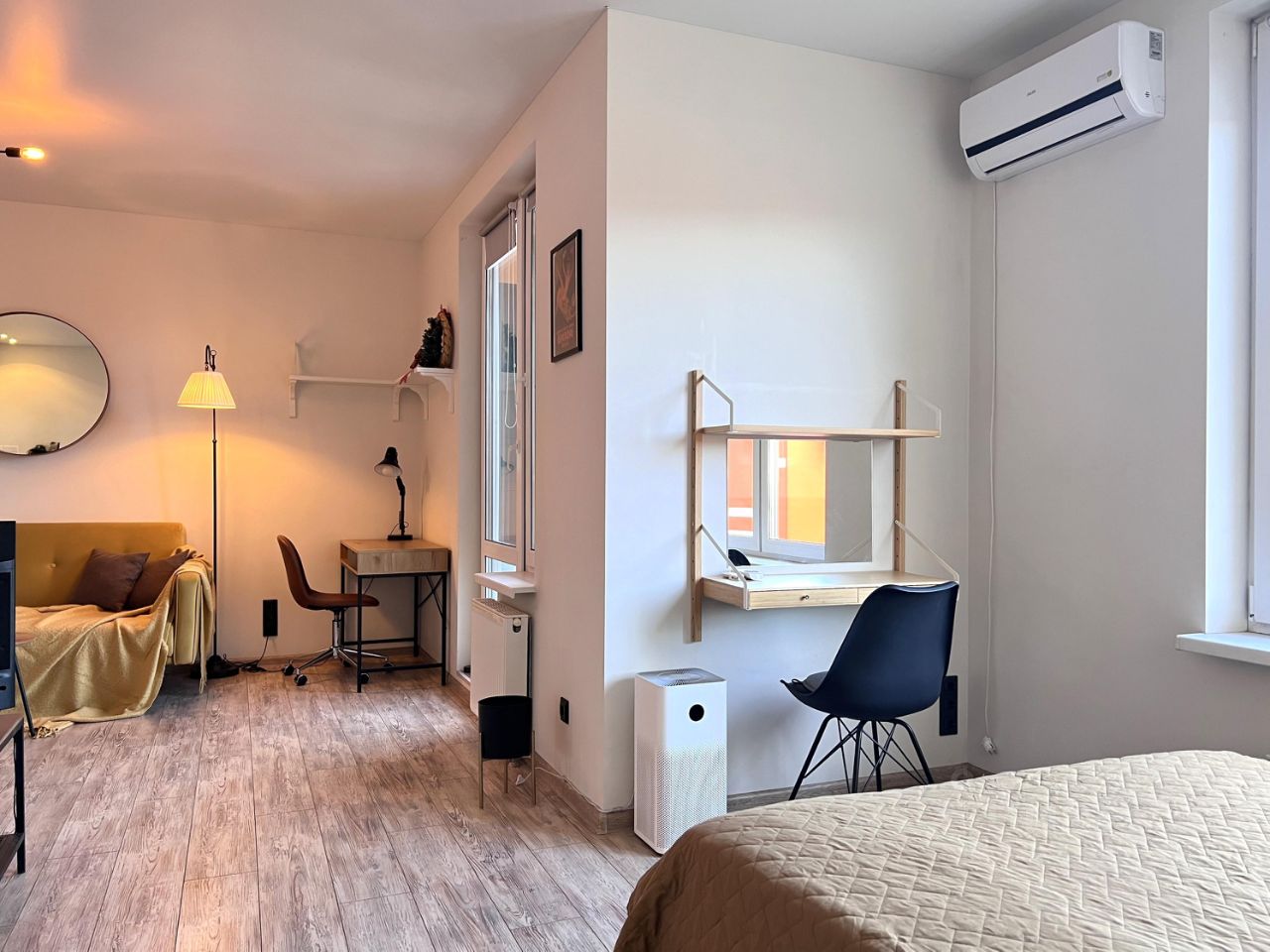 Квартира студийного плана с общей площадью 48м2, никогда не сдавалась. Отличное состояние и всё необходимое для комфортного проживания.