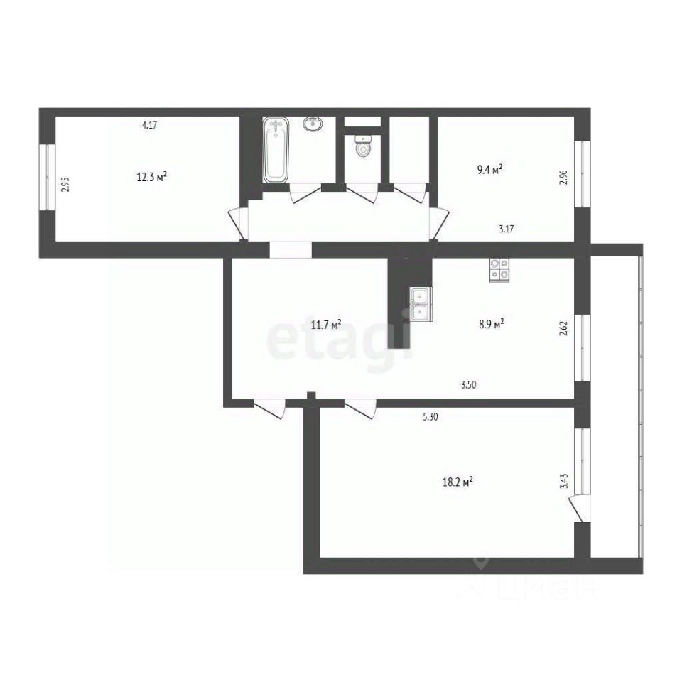 О квартире: - общая площадь 65,7 кв.м. - просторная кухня 8,9 кв.м.