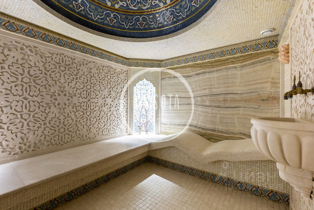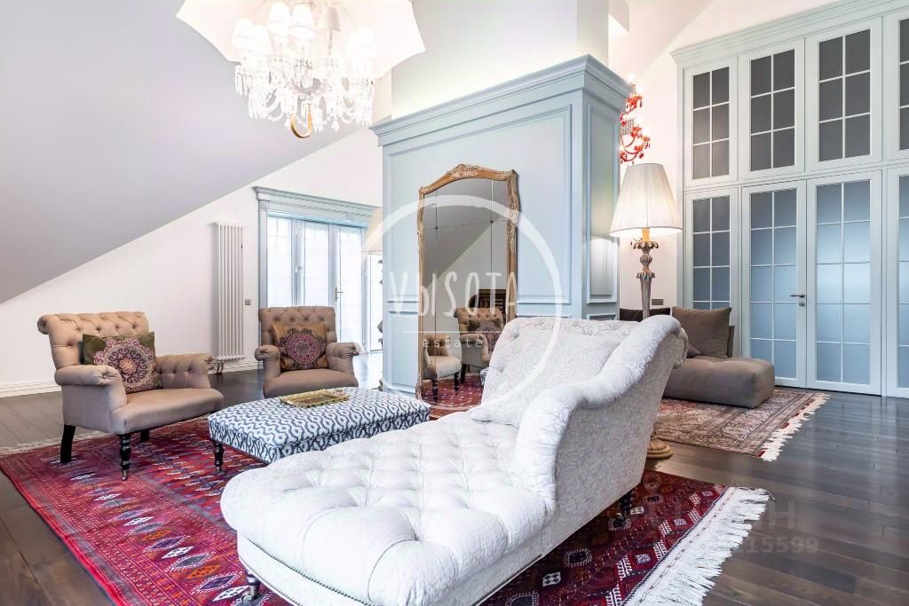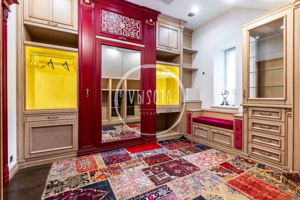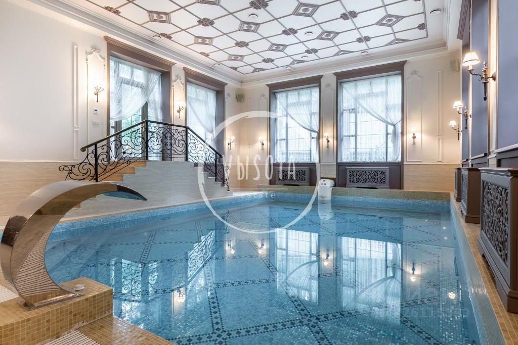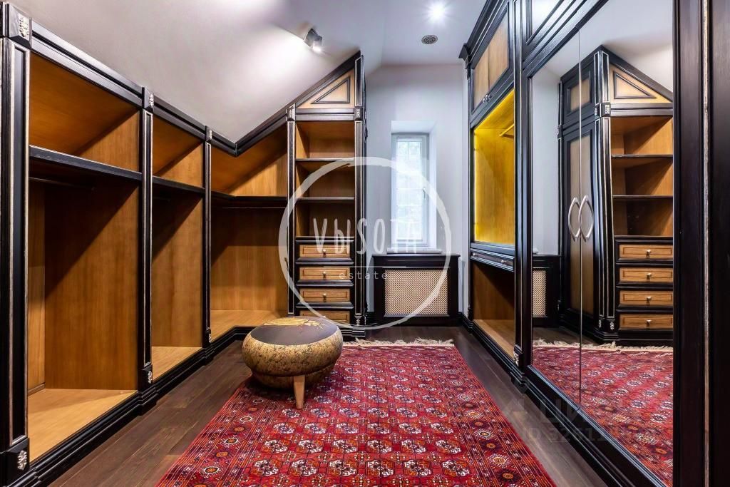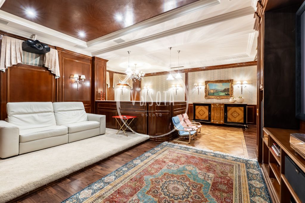 Состав помещений: Цоколь: зона отдыха с баром, кинозал, винный погреб, сейфовая комната, постирочная, с/у, гимнастический зал. Relax зона: красивый бассейн с противотоком, хаммам, сауна, соленая комната, с/у. 1-й этаж: просторная прихожая, гостиная-столовая, комфортная зона с диванами и телевизором, гостевой с/у, мастер-кухня, скрытая изолированная кухня для персонала (вся встроенная техника Miele), кабинет. 2-й этаж: 2 детские спальни с санузлом, гостевой блок: просторная спальня с эркером-гардеробная-санузел. Мансарда: хозяйский бок: спальня с двумя гардеробными комнатами и с/у, зона отдыха с диваном, ТВ и мини баром, терраса.