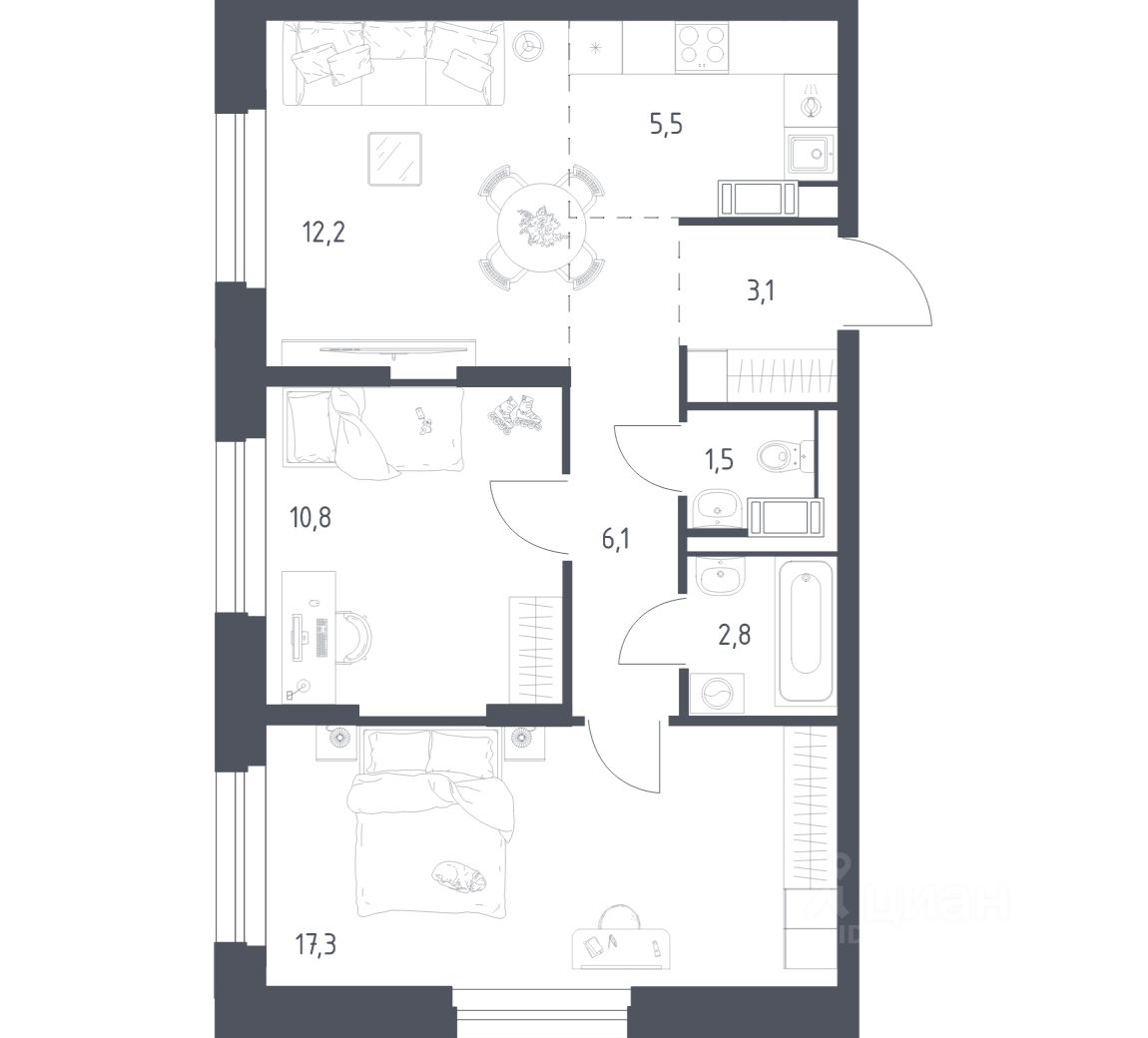 Строим кварталы для жизни с заботой о будущем. Предлагается 2-комнатная квартира комфорт-класса площадью 58,0 кв.м в корпусе 4.2 на 4-м этаже, в жилом комплексе ''Мытищи Парк''.